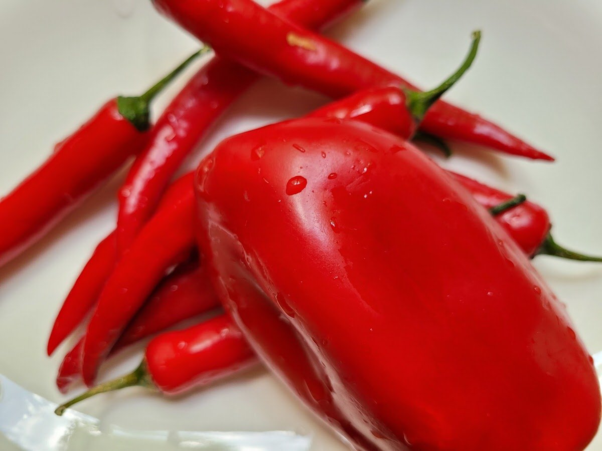 - Die Schoten waschen, Strunk abschneiden, je nach Schärfewunsch entkernen.