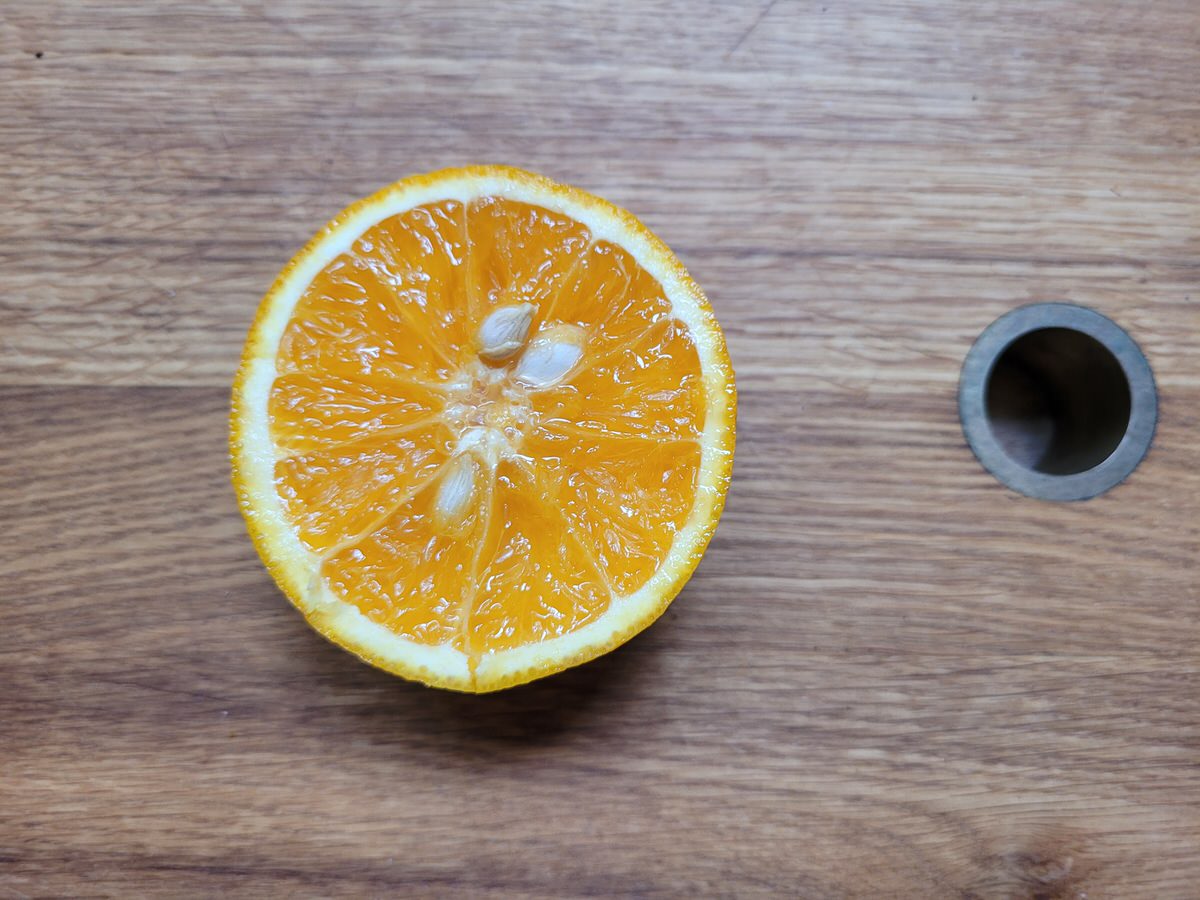 - In einer Schüssel mit 3 EL frisch gepresstem Orangensaft vermengen.