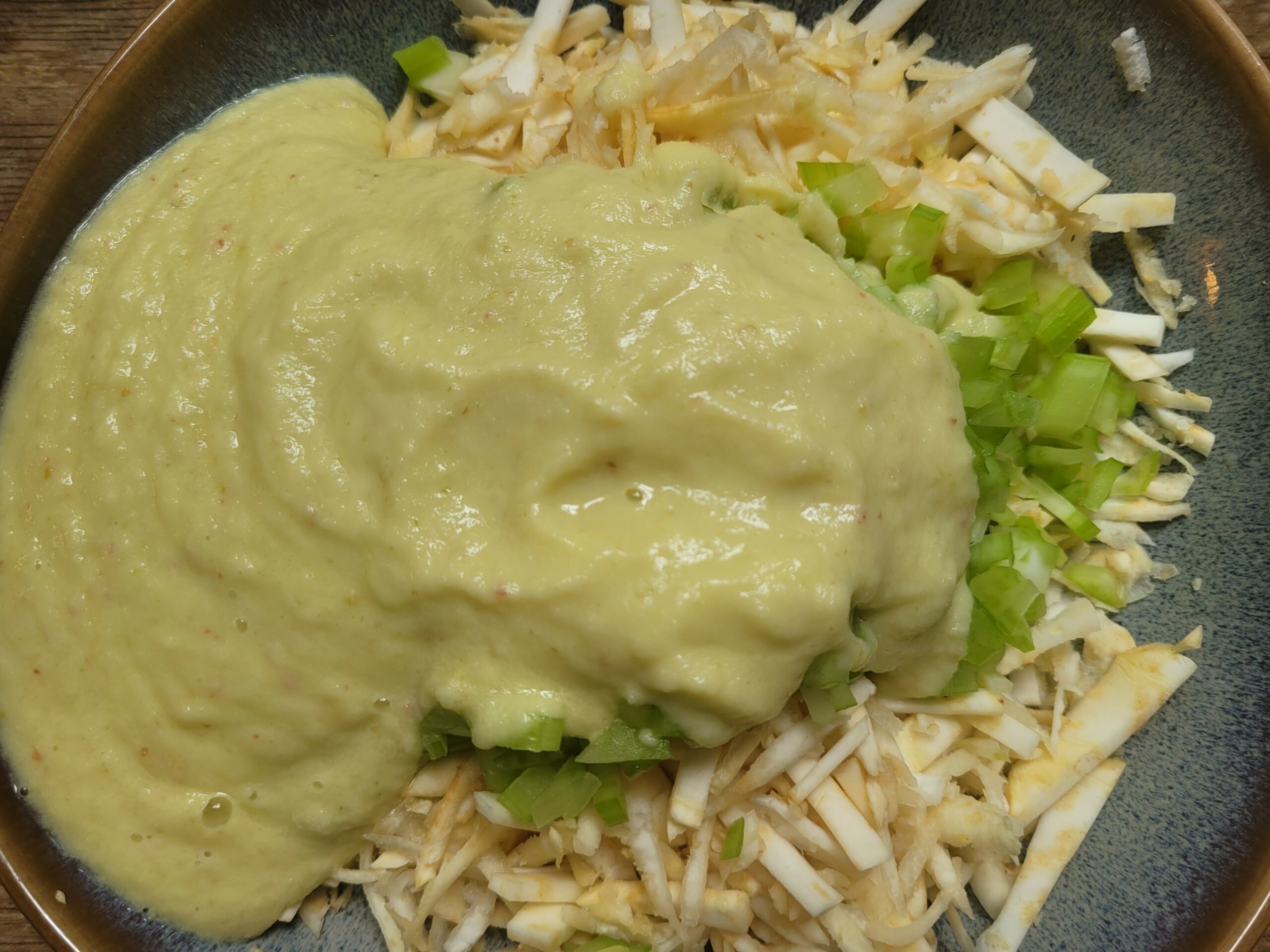 Zubereitung von Knollen- & Staudensellerie-Salat mit Meerrettich