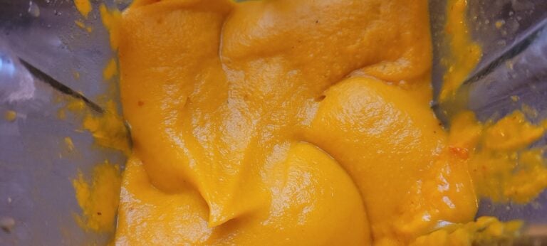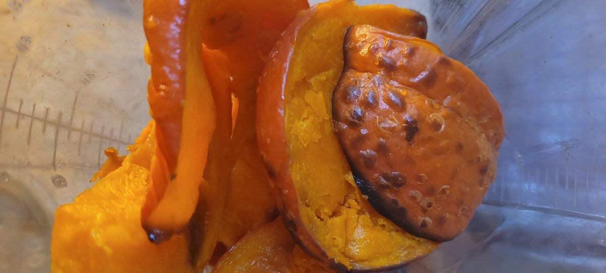 Zum Servieren, den Kürbis mitsamt den restlichen Püree-Zutaten in dem 1,4 l Behälter von Vitamix oder entsprechenden von Bianco oder Blendtec geben und zu einer sämigen Masse pürieren. In einen Topf umfüllen und bis zur gewünschten Temperatur erhitzen.
