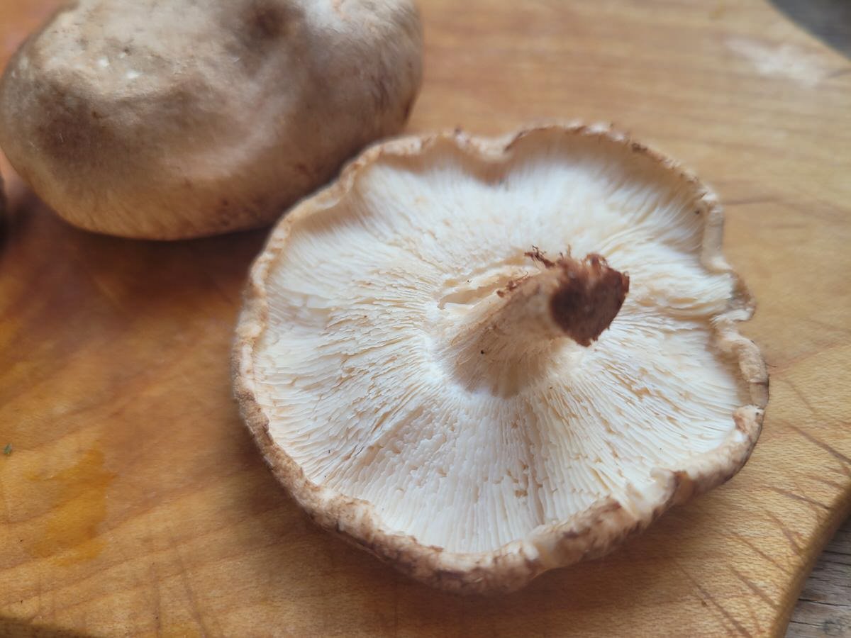 - Shiitake putzen und in gewünschte Stücke schneiden.