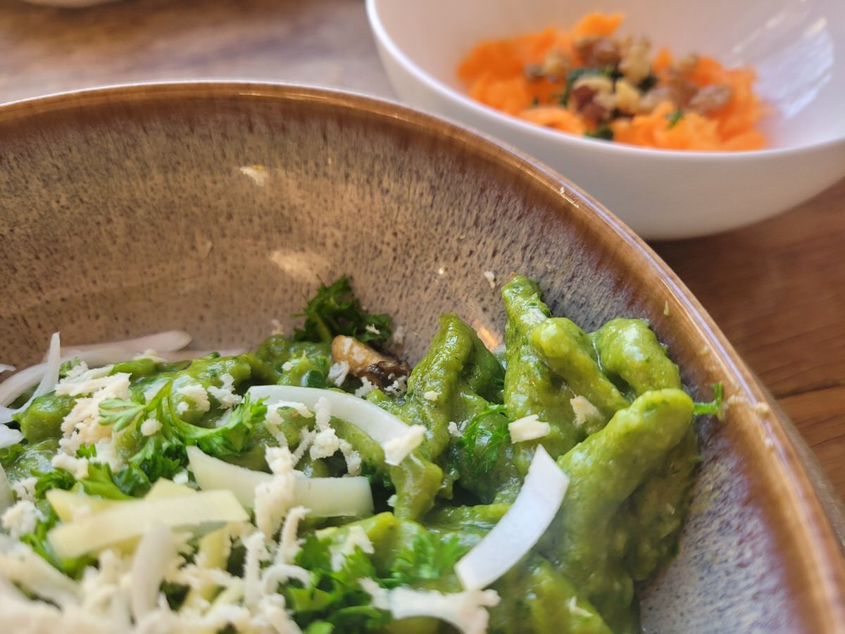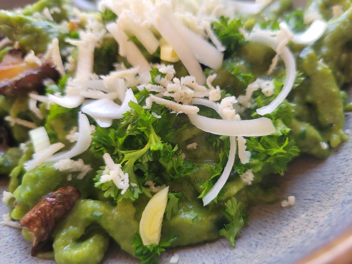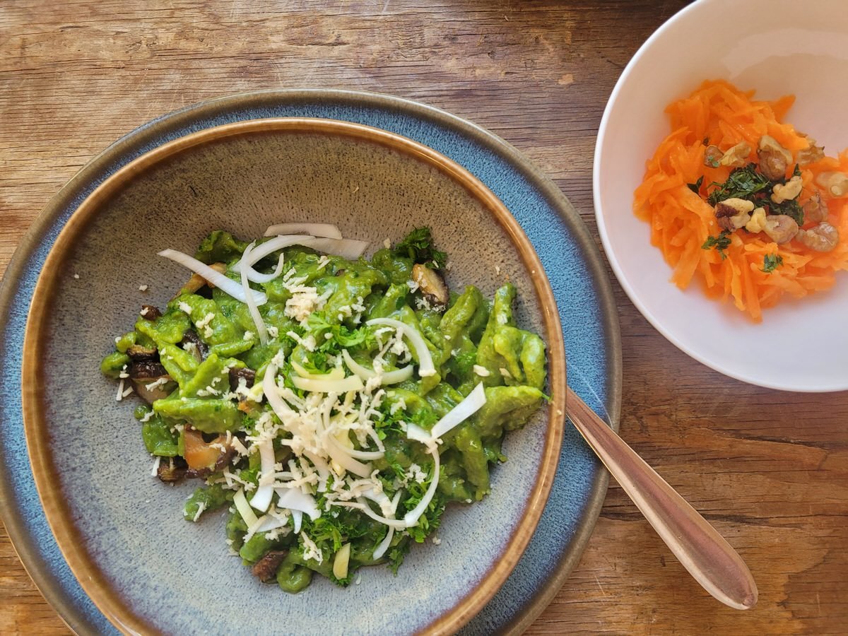 Mangold-Spätzle mit Shiitake & Meerrettich