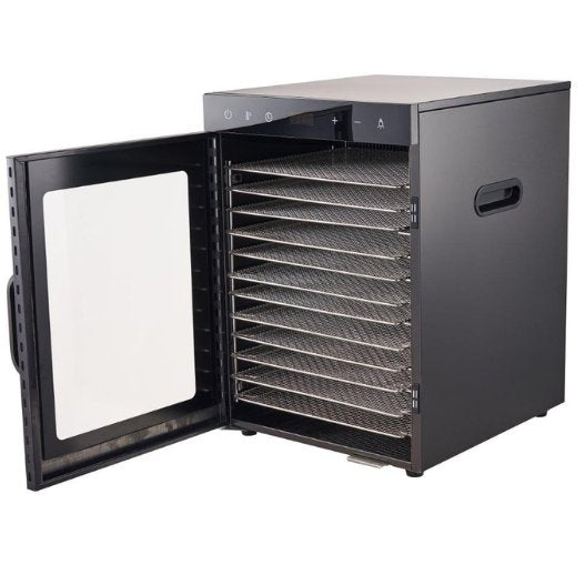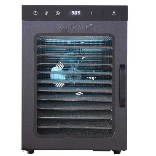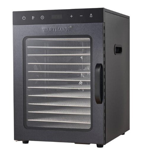 Der Wartmann WM-2512 DH ist ein hochwertiger Edelstahl-Dörrautomat mit 12 großzügigen Einschüben und nahezu 1 m² Dörrfläche – ideal zum schonenden Dörren von Obst, Gemüse, Kräutern, Fleisch und für kreative Rohkost-Rezepte.