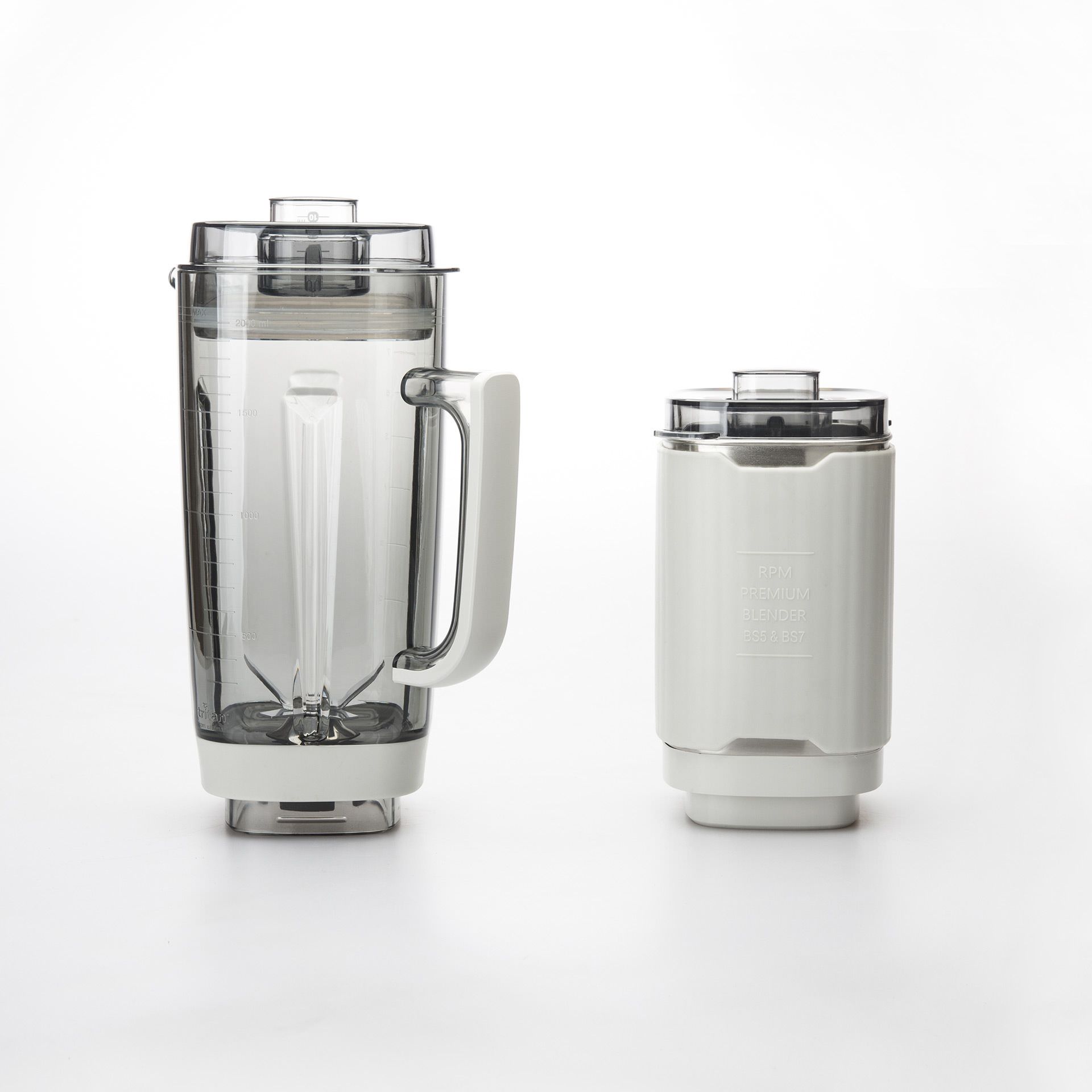 Behälter 1: 2 Liter, 8 Edelstahl-Klingen, aus Tritan gefertigt. BPA-frei