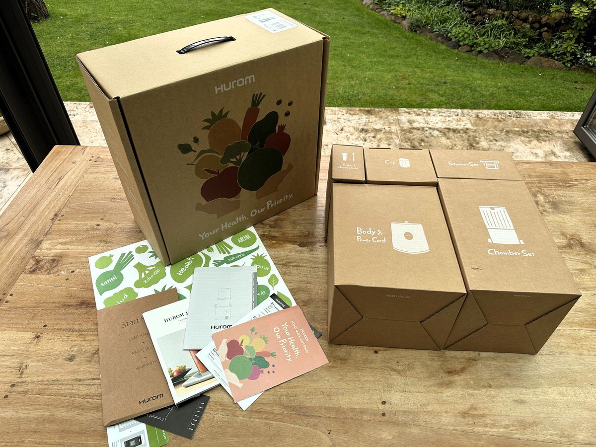 Lieferumfang des Hurom H330P Slow Juicer