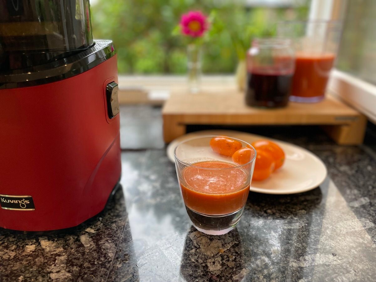 Nun zur Saftqualität. Der fertige Saft punktet mit einem guten Ergebnis. Wir finden, dass er bei Ausbeute, Aroma und Klarheit nicht ganz an die Modelle Hurom HZ und H-AA heranreicht. Aber im Feld der Kuvings Geräte ist der REVO 830 klar der beste Slow Juicer. Mit dem von uns geliebten Hurom H320N liegt er bei Saftausbeute und Qualität ungefähr gleich auf.
