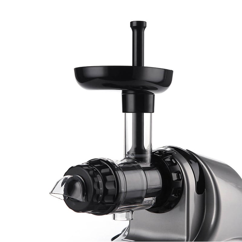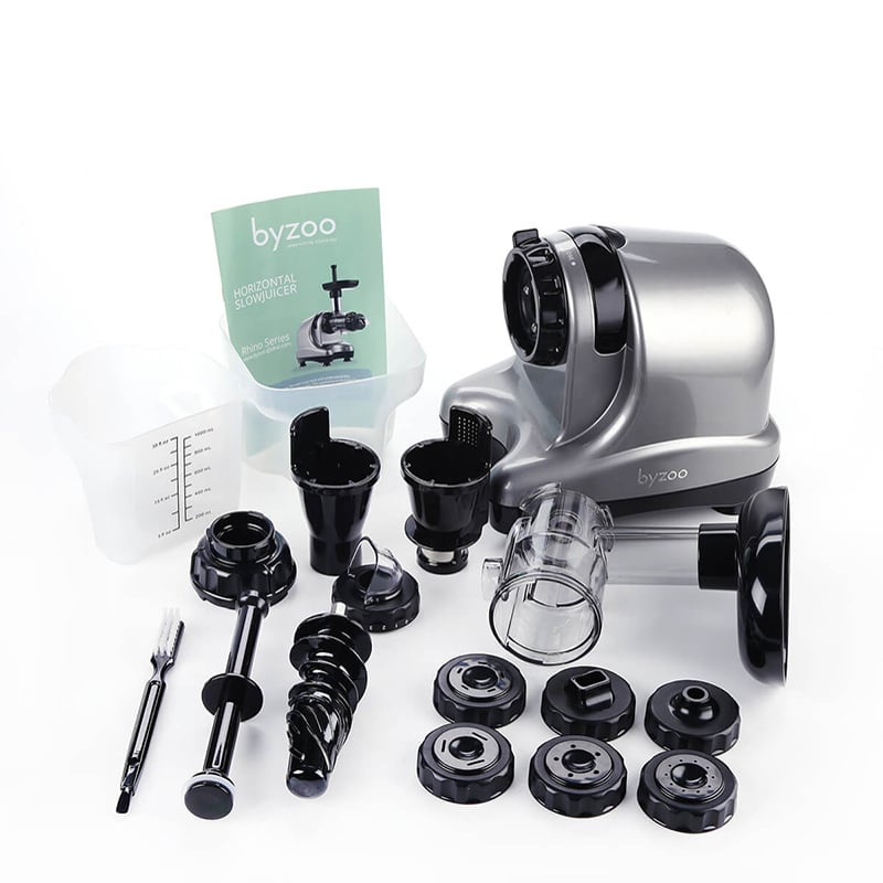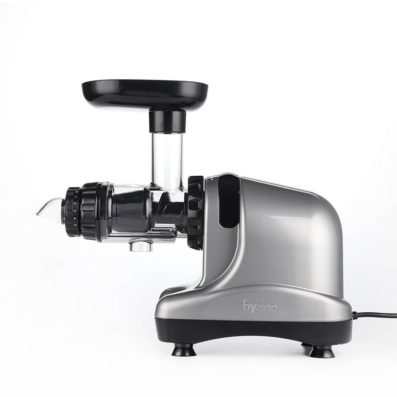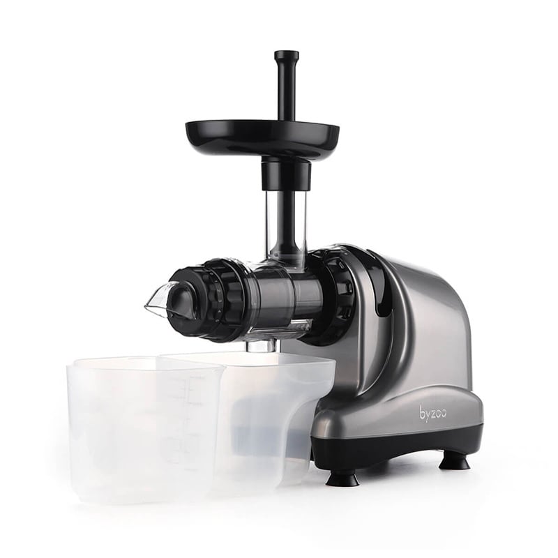 Mit dem Rhino hat byZoo einen kompakten Horizontal-Entsafter auf den Markt gebracht, der vor allem mit seinem Preis beeindruckt. Mit seinen 80 Umdrehungen pro Minute ist das Gerät ein echter Slow Juicer, der Zutaten schonend entsaftet. Das Pressgut wird kaum erwärmt, um Mineralstoffe, Vitamine und weitere Nährstoffe zu erhalten.