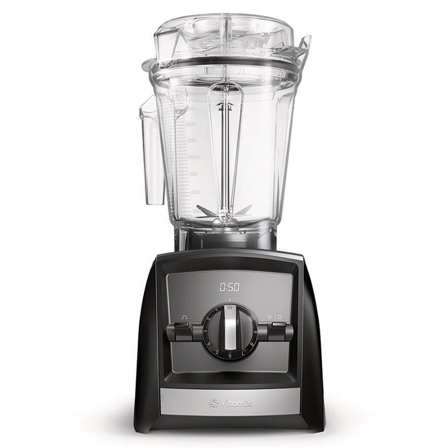 Die Formensprache stimmt mit dem Design der anderen Vitamix Ascent Hochleistungsmixer überein. Im Gegensatz zum Spitzenmodell A2500i sind die seitlichen Zierblenden nicht aus Edelstahl, sondern Kunststoff gefertigt. Der Sockel ist in den Farben Weiß, Rot, Schwarz und Schiefergrau erhältlich. Aufgrund des verringerten Funktionsumfangs ist die Bedienfront zudem einfacher gehalten. Sie umfasst zwei Kippschalter, einen Drehregler und die Digitalanzeige des Timers.