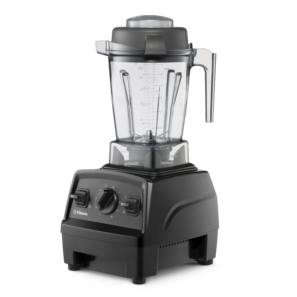 Die Unterschiede zur Professional Serie, wie dem Vitamix Pro 750 sind schnell gefunden. Der Sockel sieht schlichter aus und der Mixbehälter ist kleiner. Zudem wurde der seitliche Hauptschalter entfernt. Sobald der Hochleistungsmixer eingesteckt ist, lässt er sich per Betätigung des Kippschalters starten.