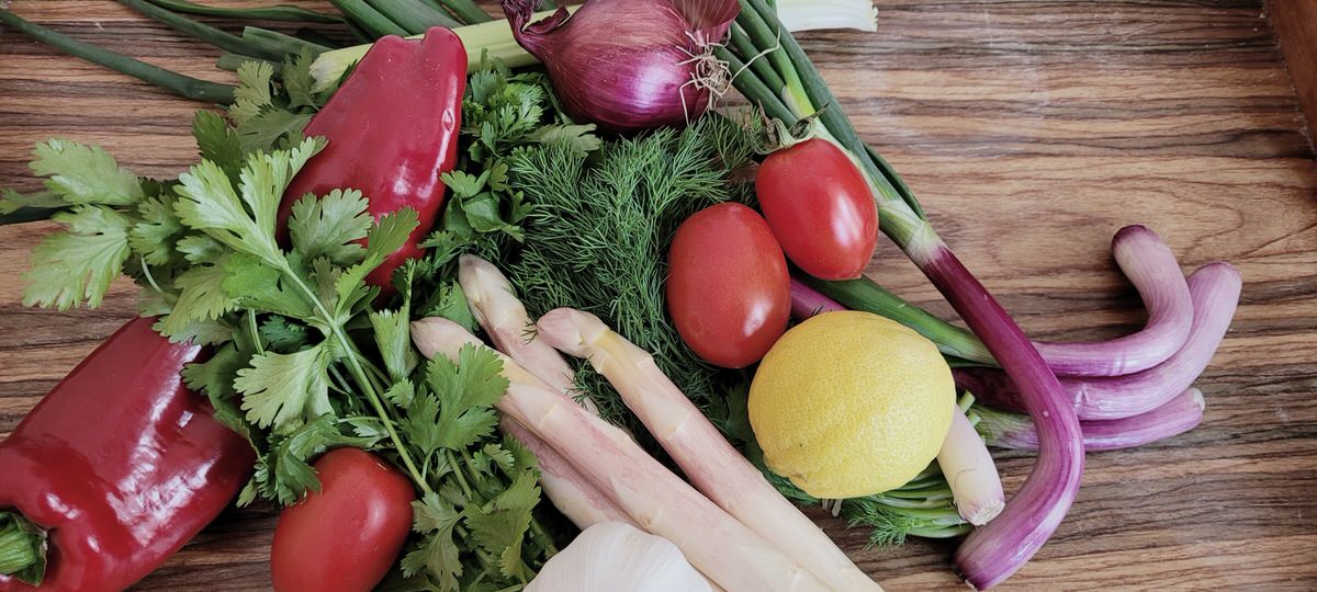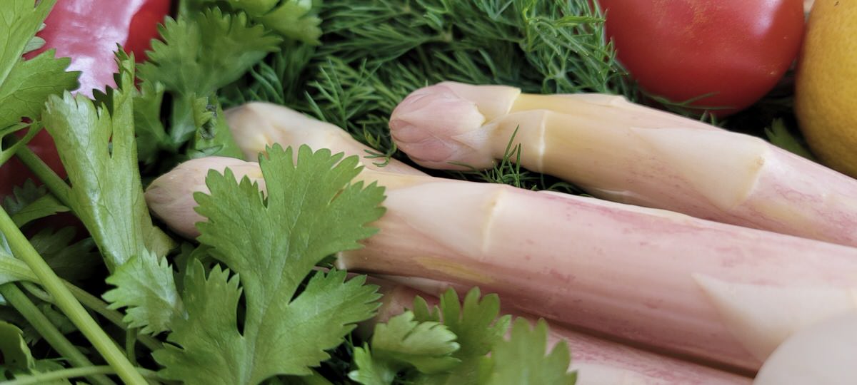 Auf der Suche nach einem neuen Rezept kam mir die Idee, den rohen Spargel diesmal wie rohen Fisch zu verwenden. Eine Ceviche! Dort wird der Limettensaft benutzt, um den rohen Fisch zu ‚garen‘. Die Säure verändert seine Eiweißstruktur. Da der Spargel keine Eiweißstruktur hat, braucht er zwar keinen Limettensaft, der schmeckt aber so gut! Vielmehr ist es hier Öl und Salz, was den rohen Spargel weicher macht. Dazu ein schönes Dressing mit Koriander – und schon wieder haben wir ein Essen, das nach Urlaub schmeckt 😊