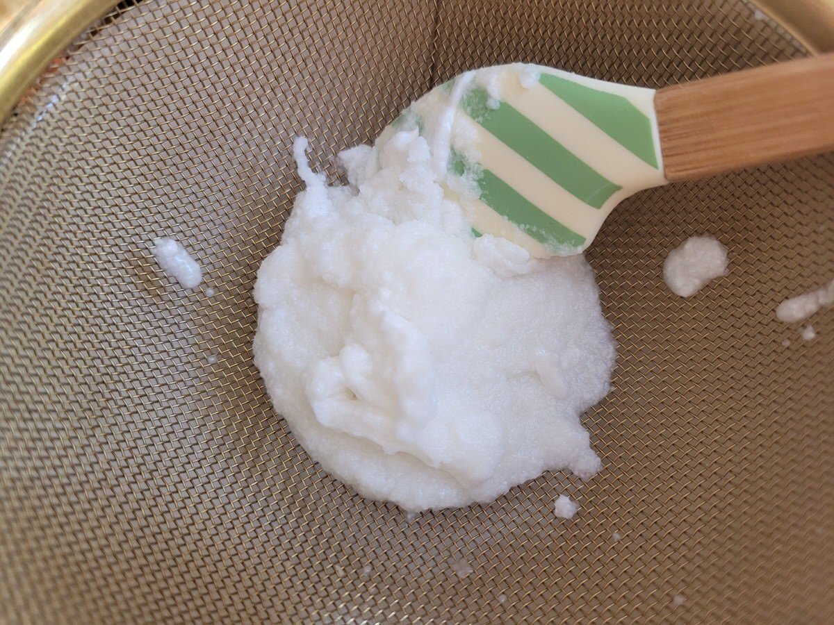 Durch ein feines Sieb streichen. Den Trester in einen Smoothie geben oder einfrieren und bei Gelegenheit verbrauchen/verbacken.