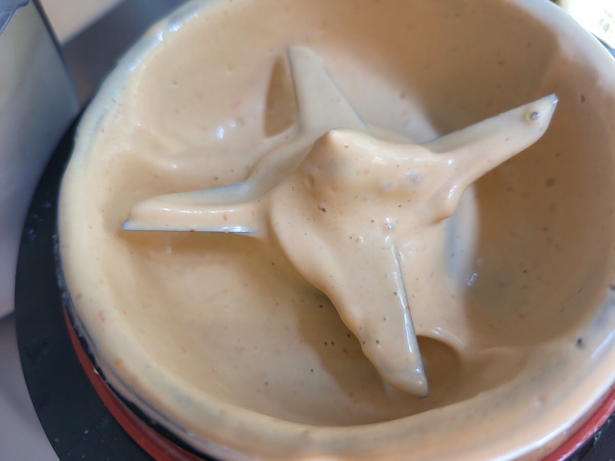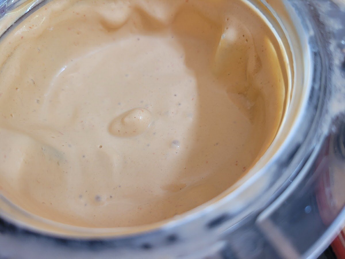 Im vorherigen Rezept ging es um Sriracha. Wer die gemacht hat, ist nun fein raus, denn er kann sie als Zutat in verschiedenen Soßen, Dips und Dressings benutzen. Die Variationsmöglichkeiten sind unendlich. Hier sind 2 davon. Eine mit Tahin, also Sesammus, als Basis. Die andere mit Erdnussmus. Aber auch Mandelmus eignet sich hervorragend. Oder eingeweichte und mit frischem Wasser pürierte Sonnenblumenkerne und Kürbiskerne. Oder geschälte Hanfsamen.