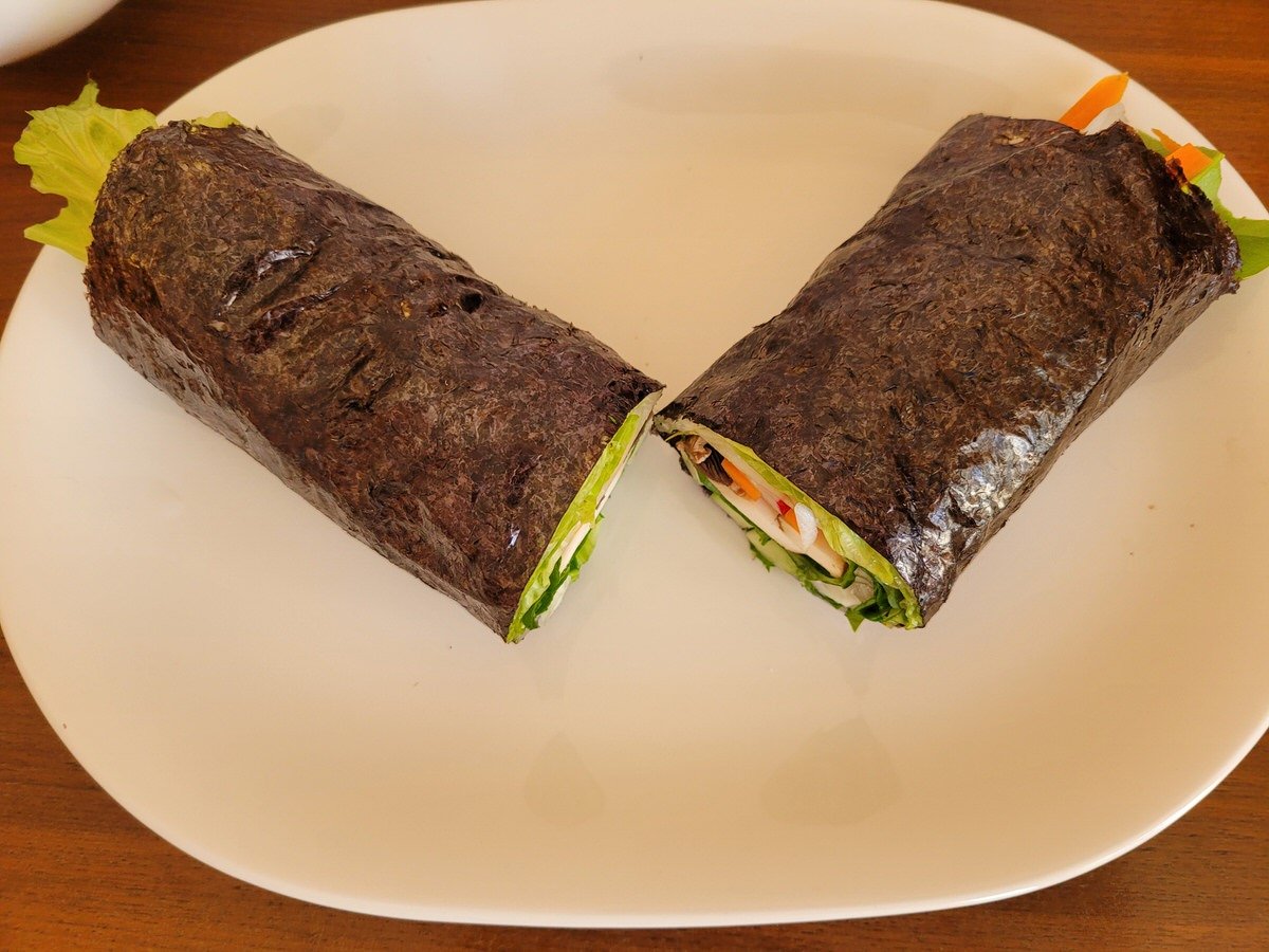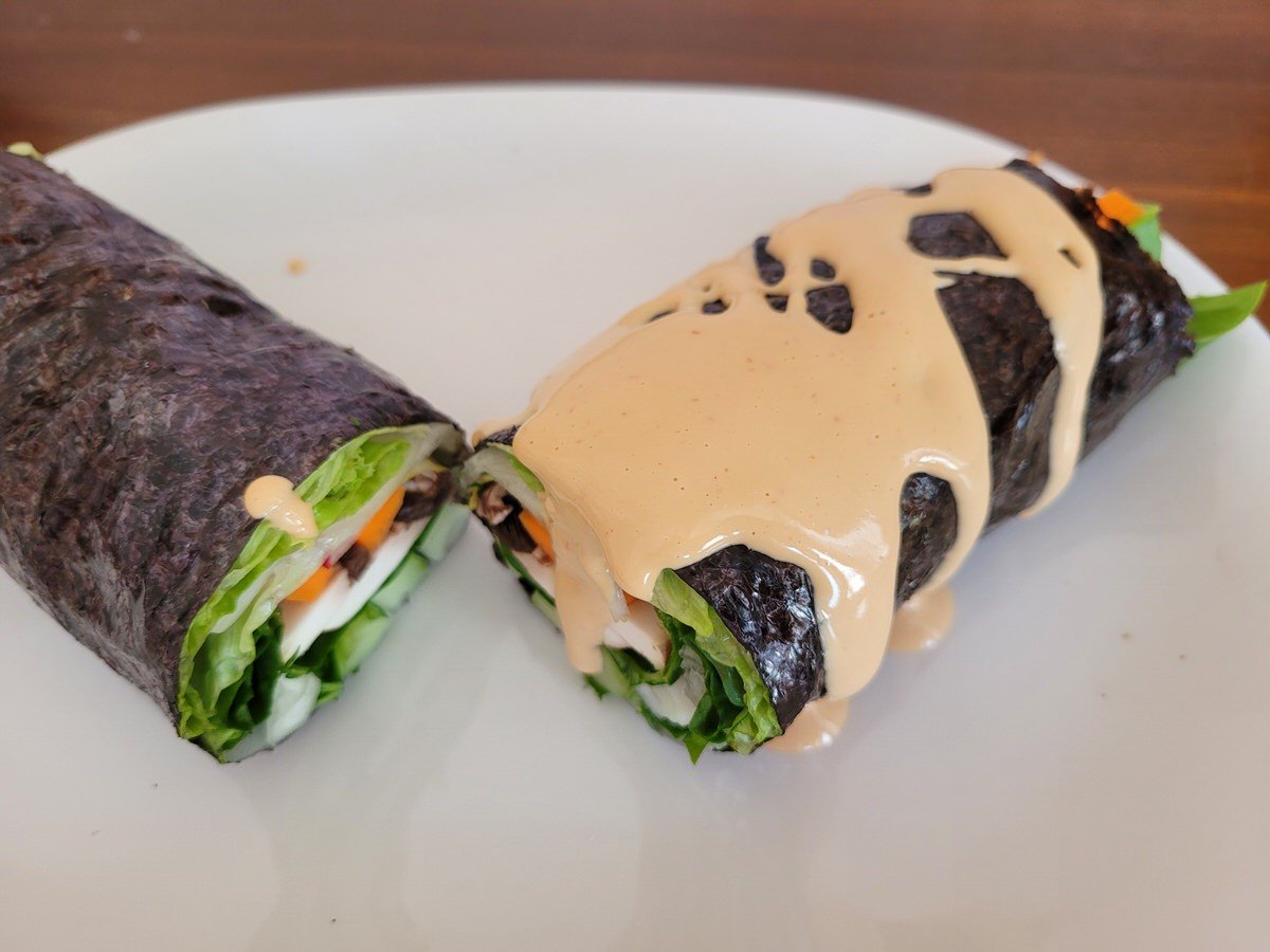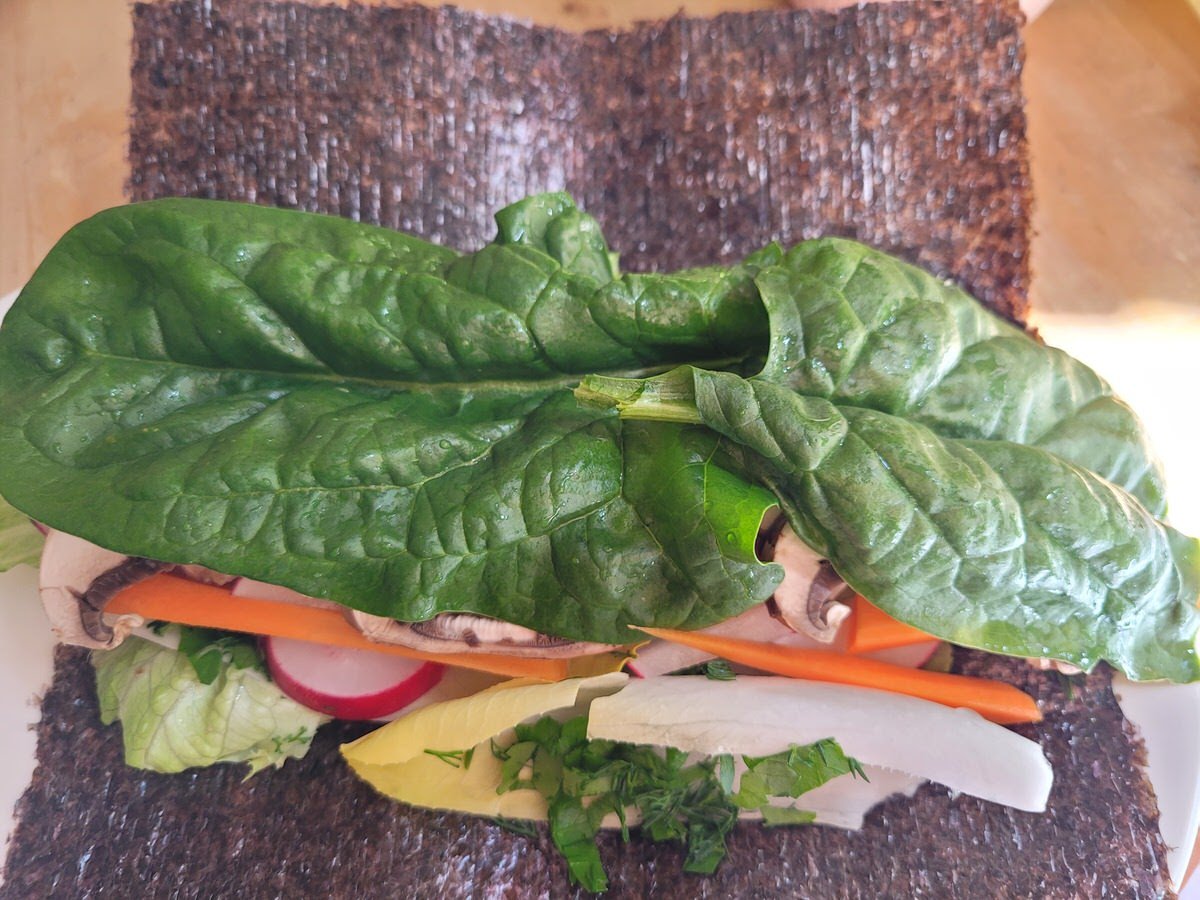 Die Ernussvariante passt besonders gut zu Sommerrollen oder - hier zu sehen: Riesen Rohkost Sushis.